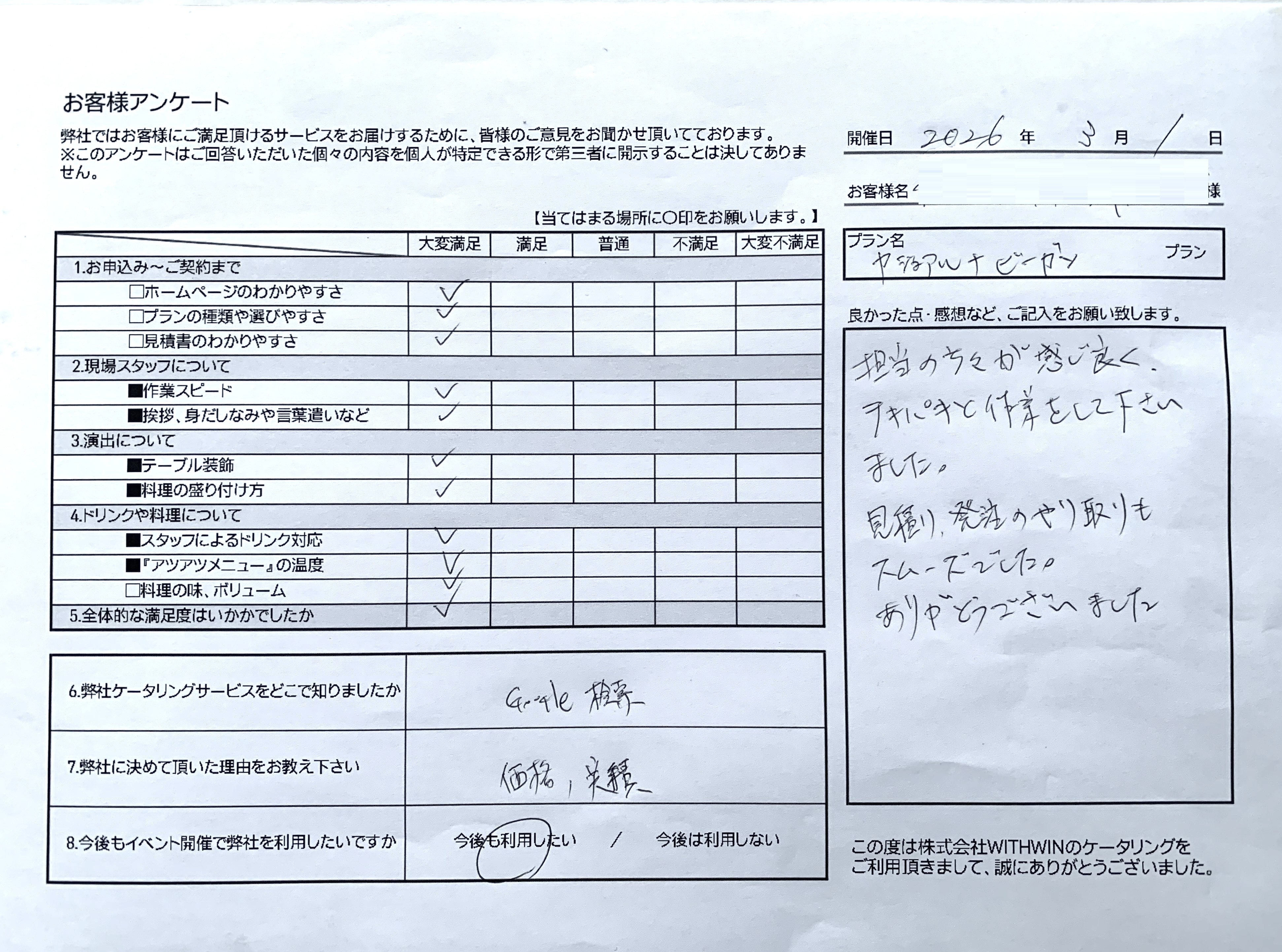 「価格と実績で選びましたが、今後もぜひ利用したいです」