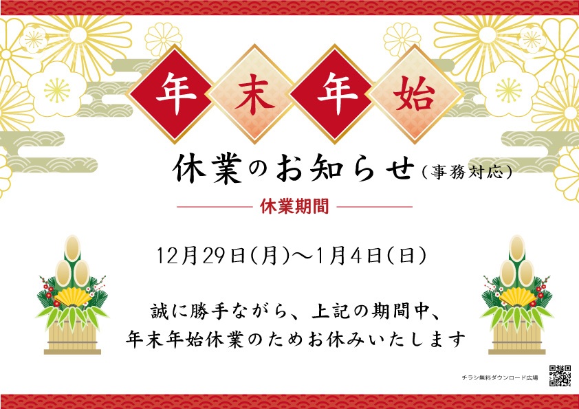 年末年始のお知らせ